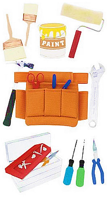 Jolee's® Boutique Le Grande, from Stickopotamus®. "Handyman" (SP-JBLG-011) dimensional sticker embellishments are a great way to add texture and 'pop' to scrapbook pages and hand crafted cards for a diverse and creative look. Self-adhesive mixed media embellishments measure 1 ½" to 2 ½" large and are ready to peel-and-stick. Because of the handmade nature of this product, materials & color may vary from one package to another.