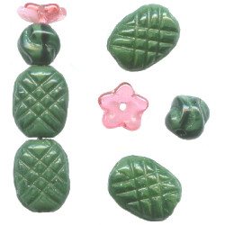 SIZE: 40mm (total length)SHAPE: CactusORIGIN: CzechoslovakiaCOLOR: Green & PinkPACKAGE: 2 Sets (8 beads)